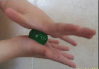 поочередно надевает массажное кольцо на каждый палец, одновременно проговаривая
